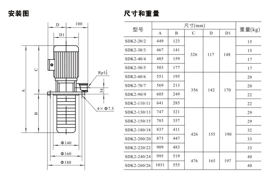 SDK2/SDKT2為配用標(biāo)準(zhǔn)電機(jī)的非自吸立式多級(jí)離心泵,電機(jī)軸和泵軸用聯(lián)軸器直接聯(lián)接的結(jié)構(gòu)。為滿足水槽或容器的安裝深度,可安裝空套的腔體來改變泵本身的侵入深度。