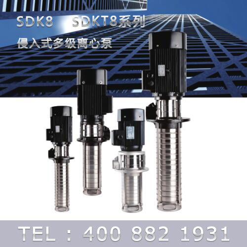 SDK8/SDKT8為配用標準電機的非自吸立式多級離心泵,電機軸和泵軸用聯(lián)軸器直接聯(lián)接的結(jié)構(gòu)。為滿足水槽或容器的安裝深度,可安裝空套的腔體來改變泵本身的侵入 深度。