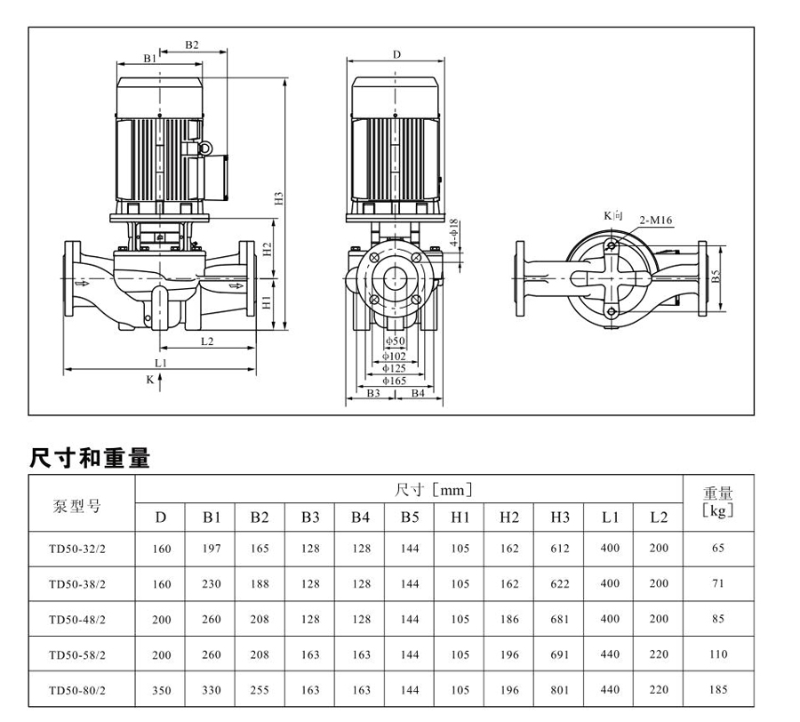 TD50系列單級(jí)管道離心泵,配有標(biāo)準(zhǔn)電 機(jī)和機(jī)械密封。此類產(chǎn)品的結(jié)構(gòu)與相近類型產(chǎn)品相比,更不易受到泵送液體中雜質(zhì)的影響。產(chǎn)品設(shè)計(jì)為頂部可拉出的拆裝形式,其可 以在不影響管路系統(tǒng)的情況下對(duì)泵進(jìn)行維修。所有泵采用創(chuàng)新式便拆式機(jī)械密封,更好機(jī)械密封無需拆卸電機(jī)。
